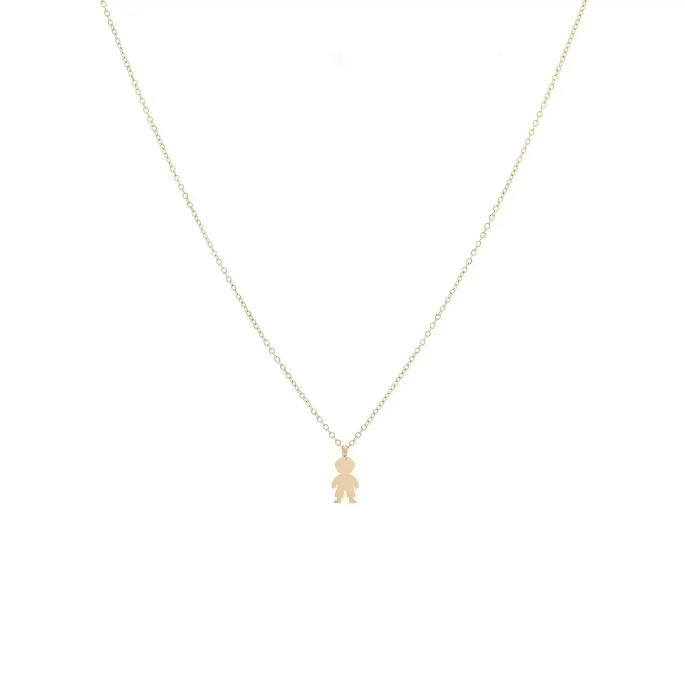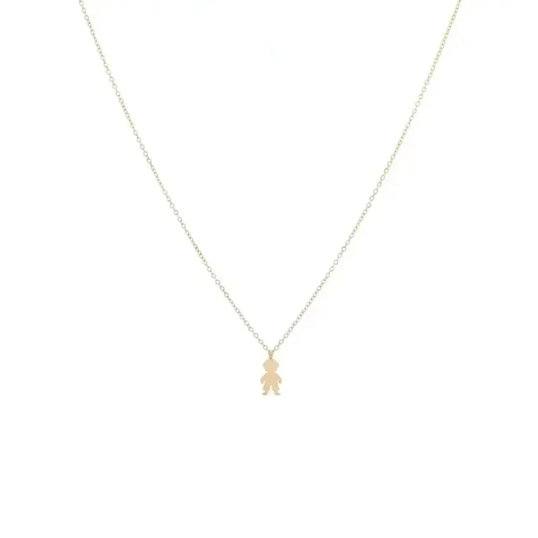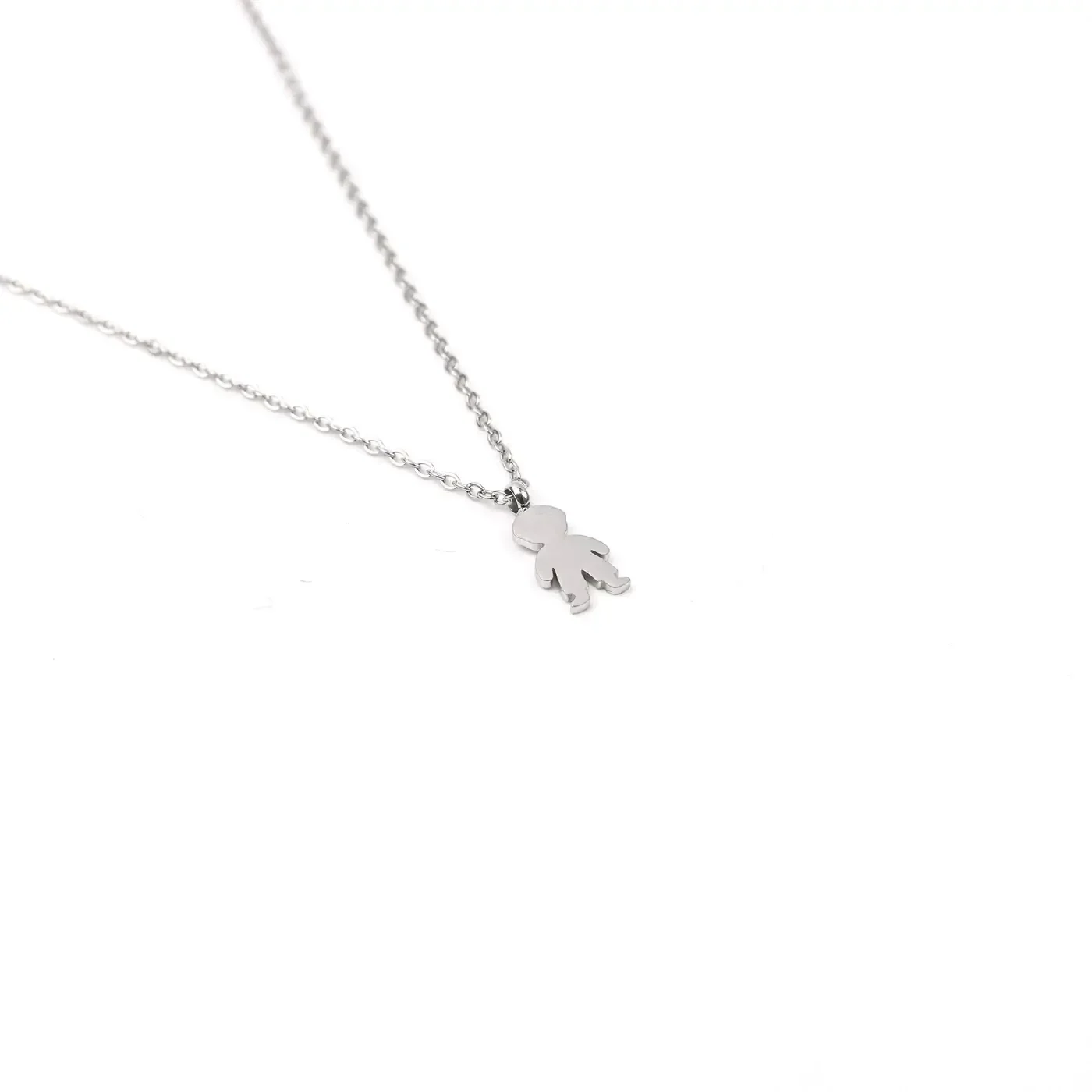 Chaine GB pour femme et pour garçon en argenté et en doré, en acier inoxydable avec un pendentif en forme de petit garçon.