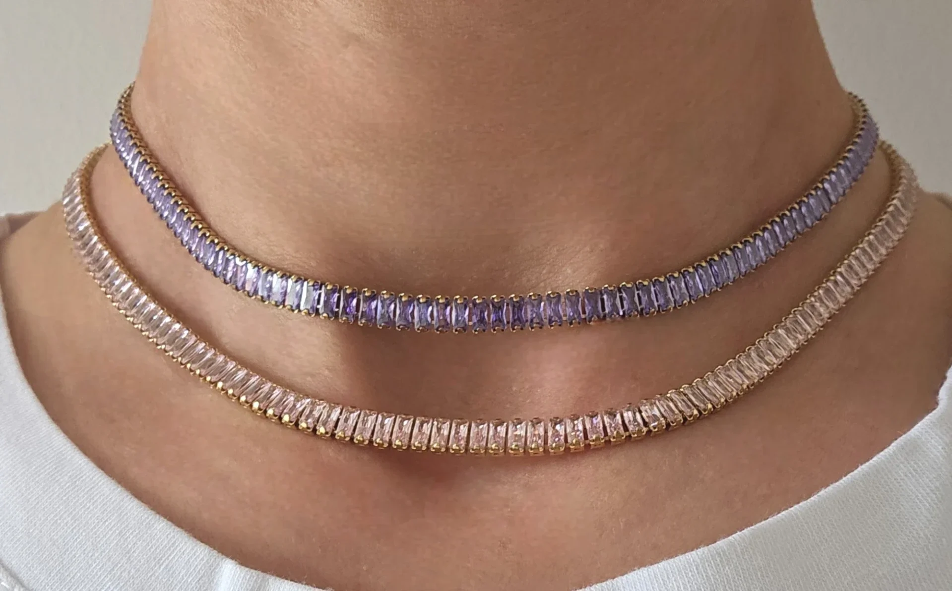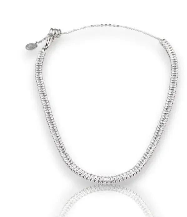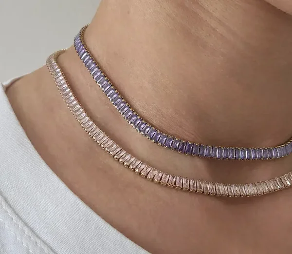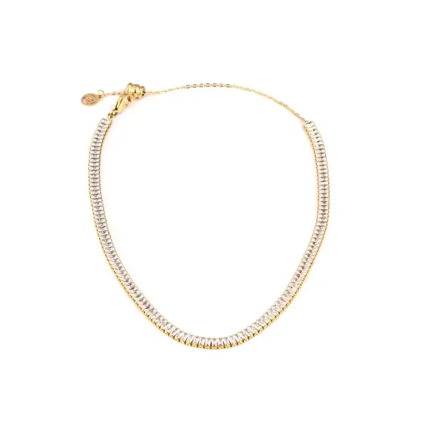 Collier rivière réglable réctangulaire pour femme, en acier inoxydable GB doré et argenté.
