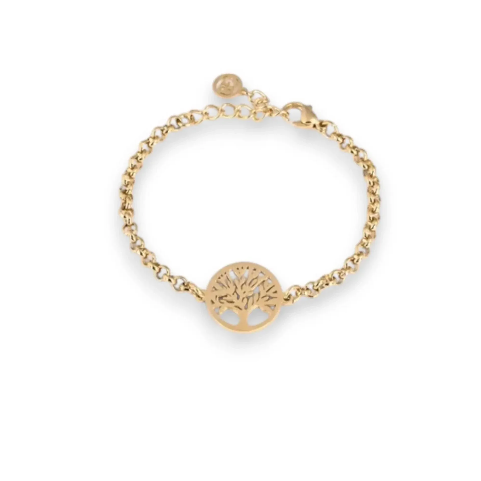 Bracelet pour femme épais en doré et en argenté, en acier inoxydable GB. Un bijou avec un arbre de vie symbole de vie éternelle.