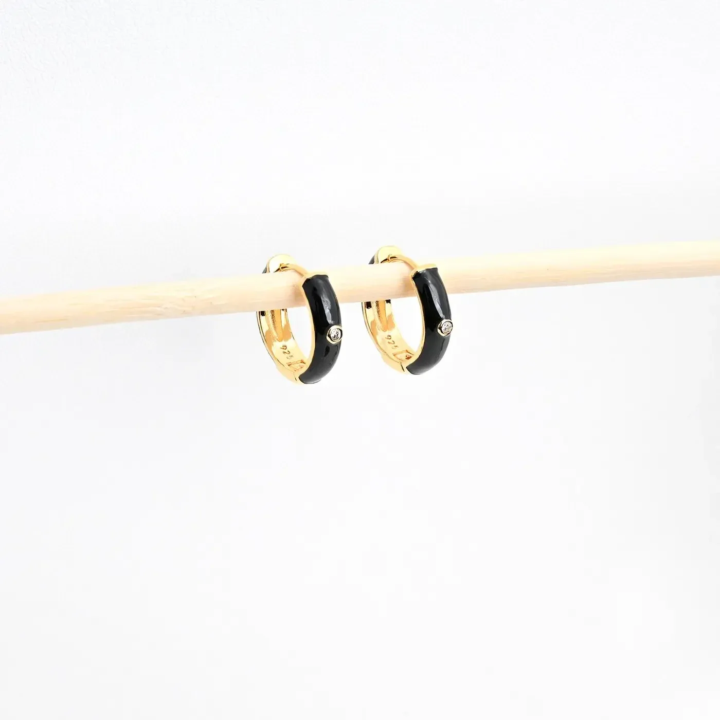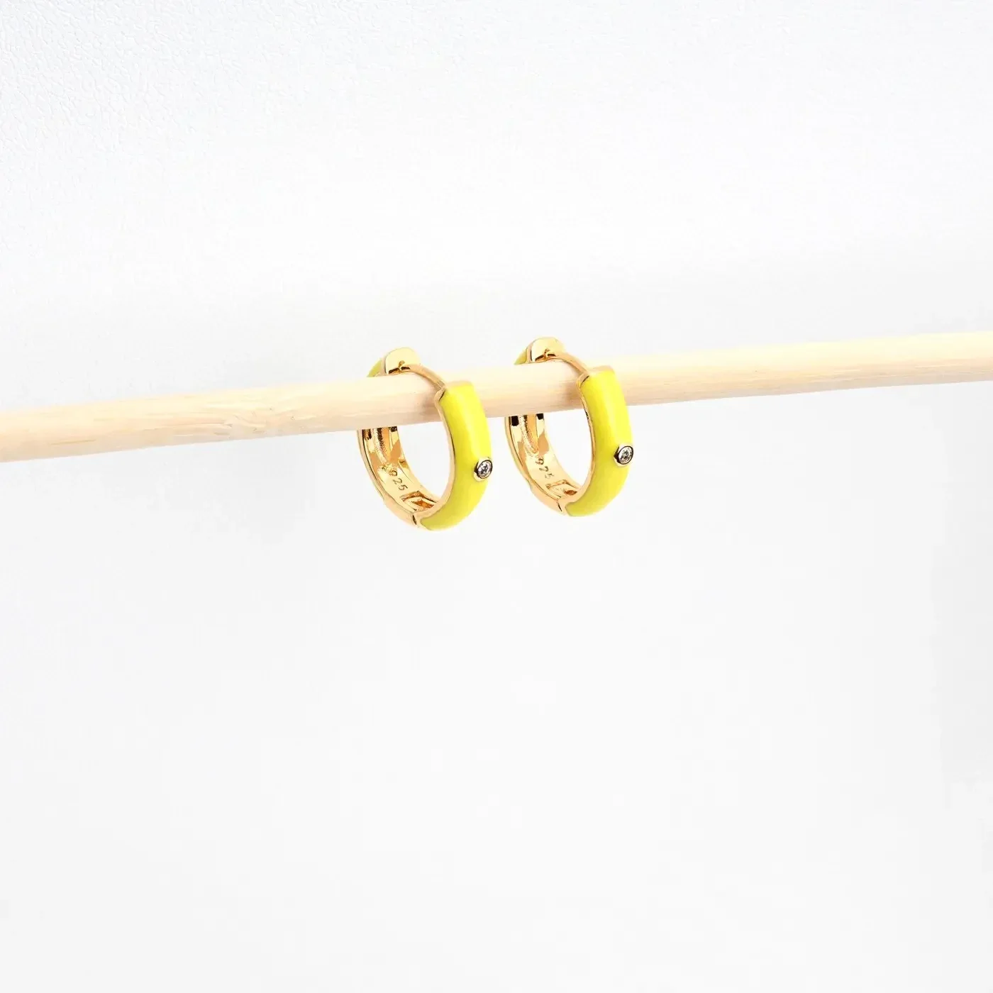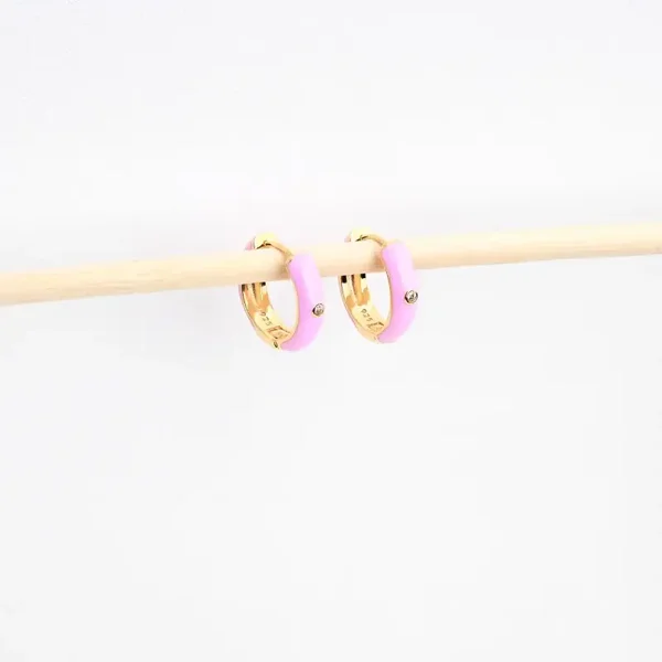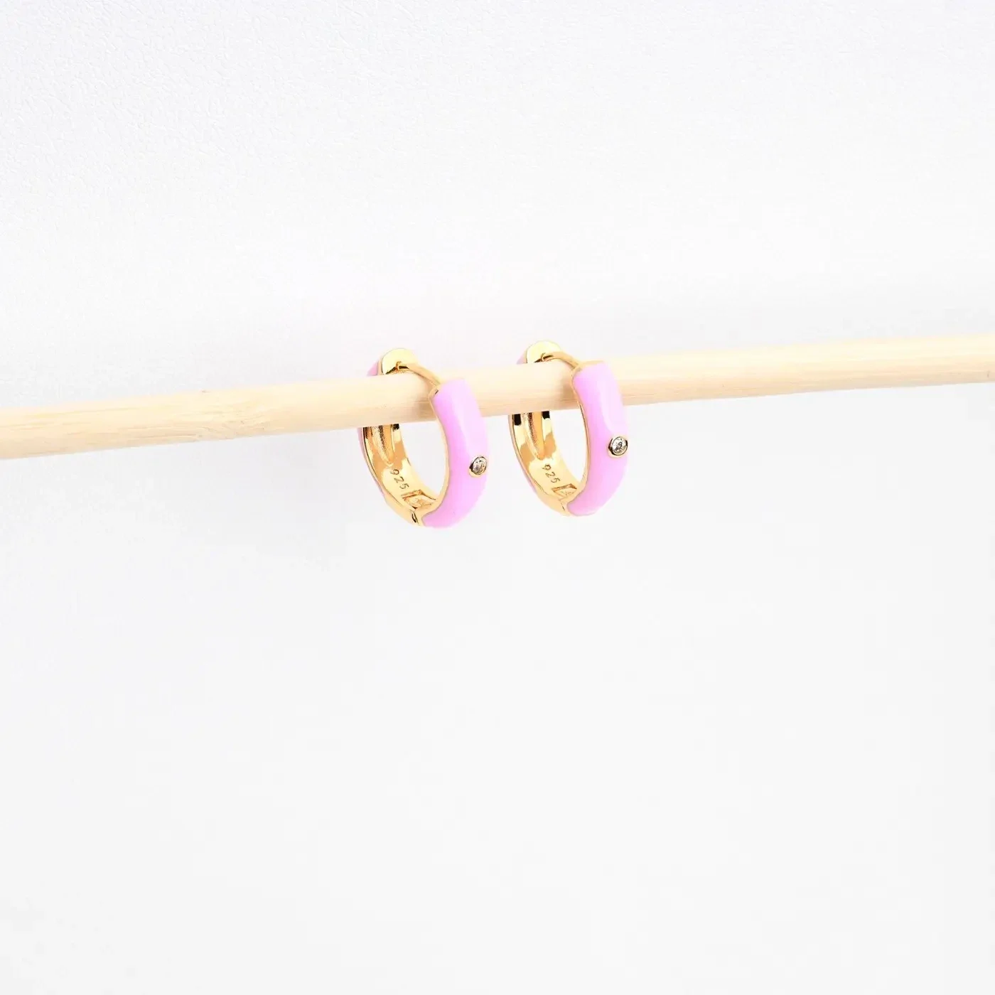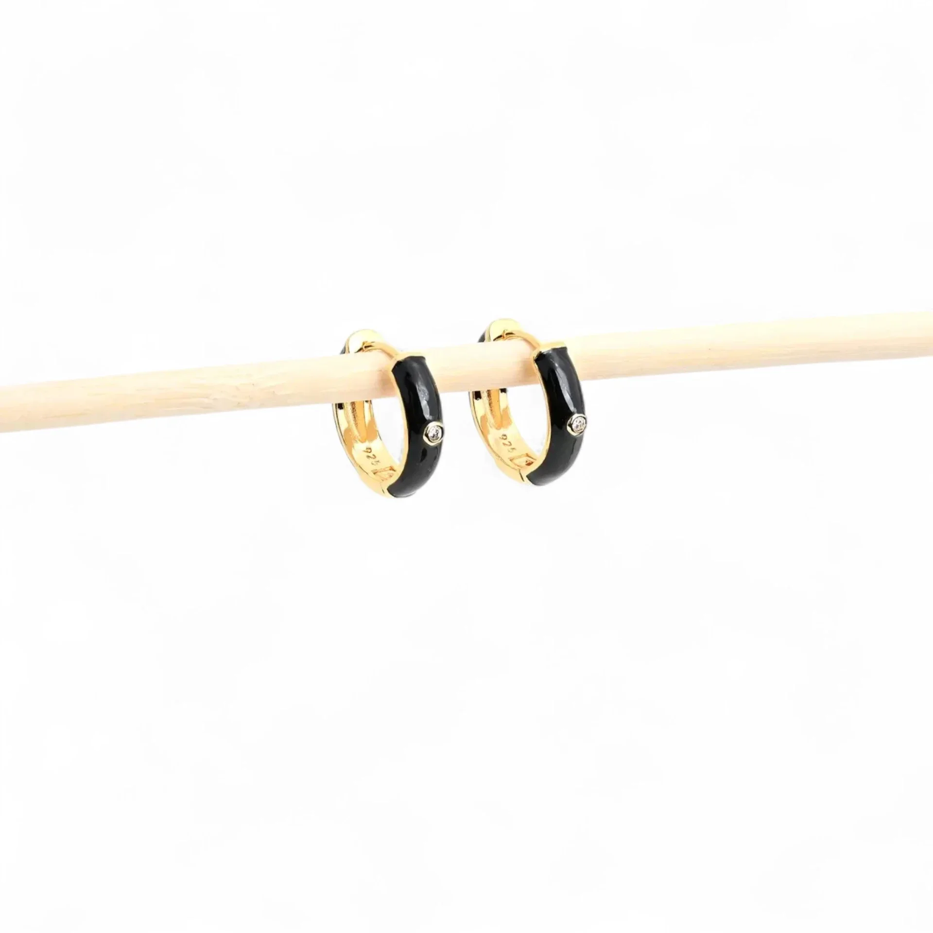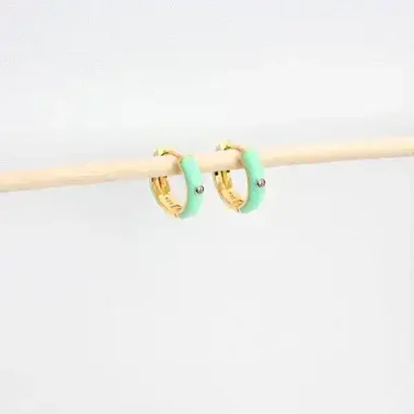 Boucles d'oreilles anneaux pour femme et pour fille, en plaqué or GB en doré avec 1 brillant et couleurs.