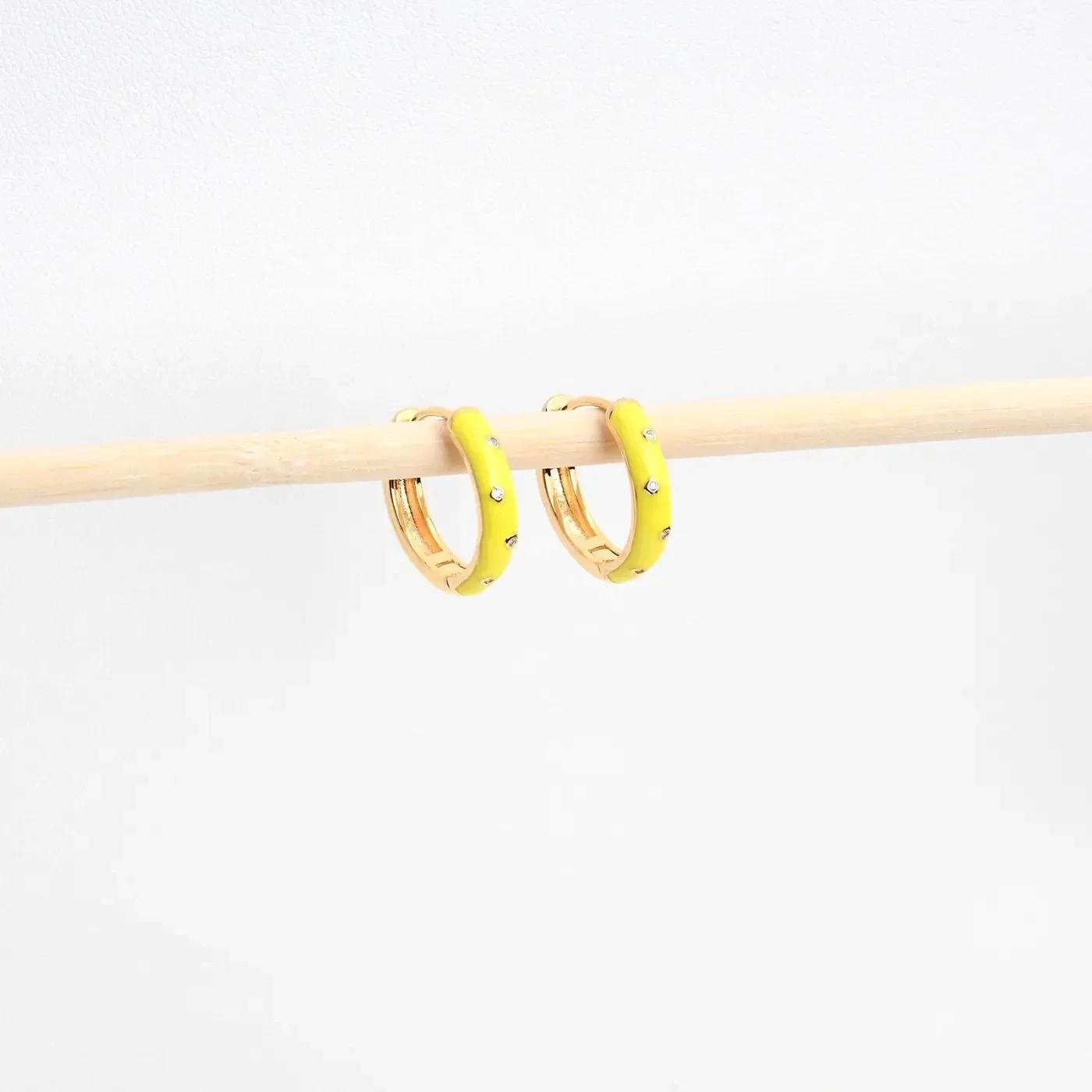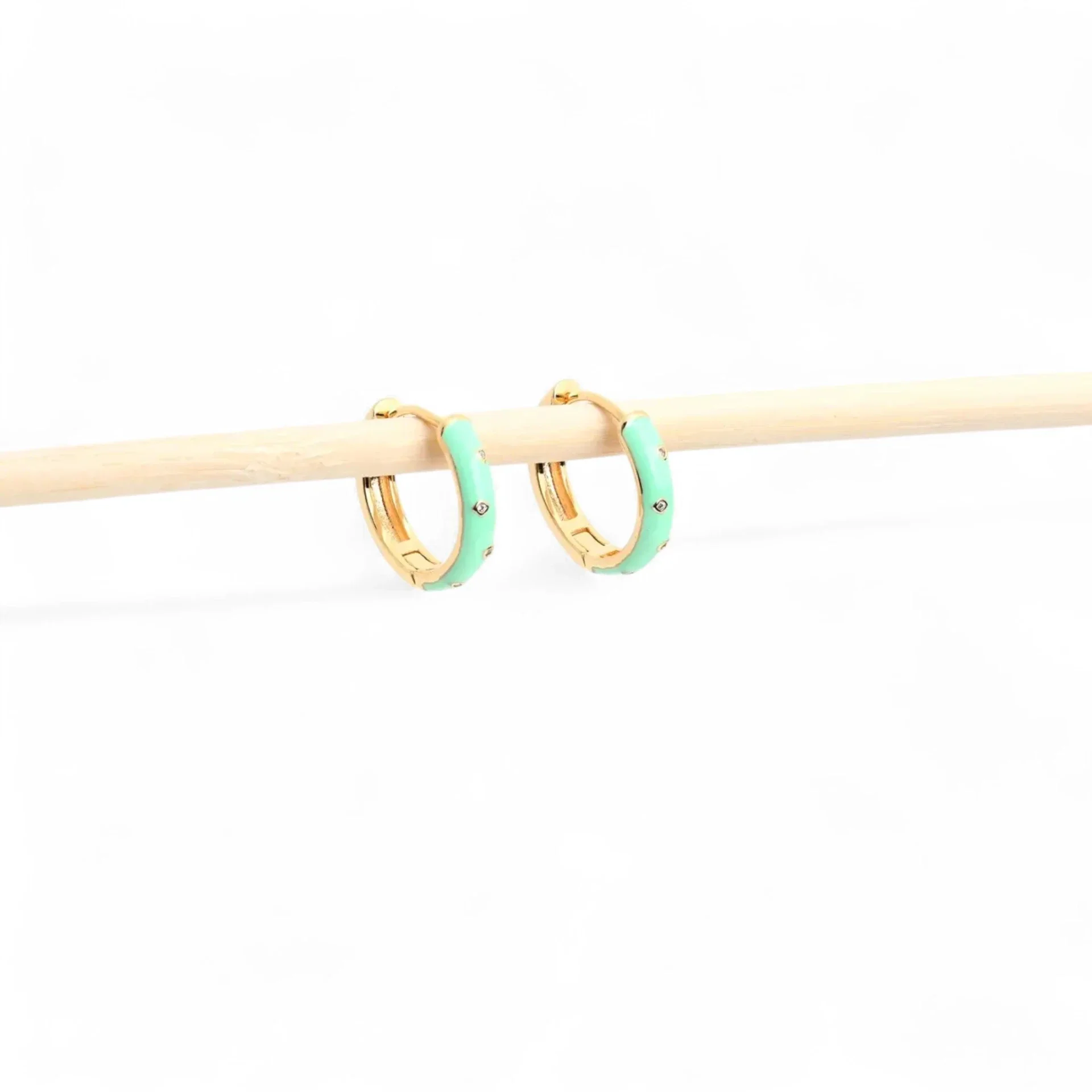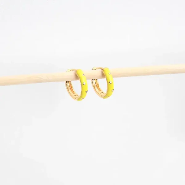 Boucles d'oreilles anneaux pour femmeet pour fille, en plaqué or GB, en doré avec brillants et couleurs.