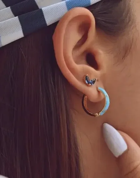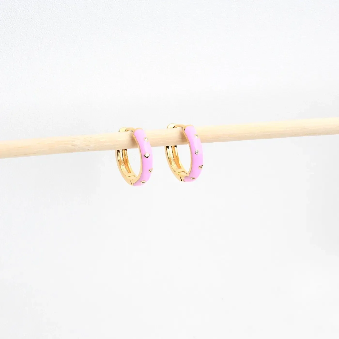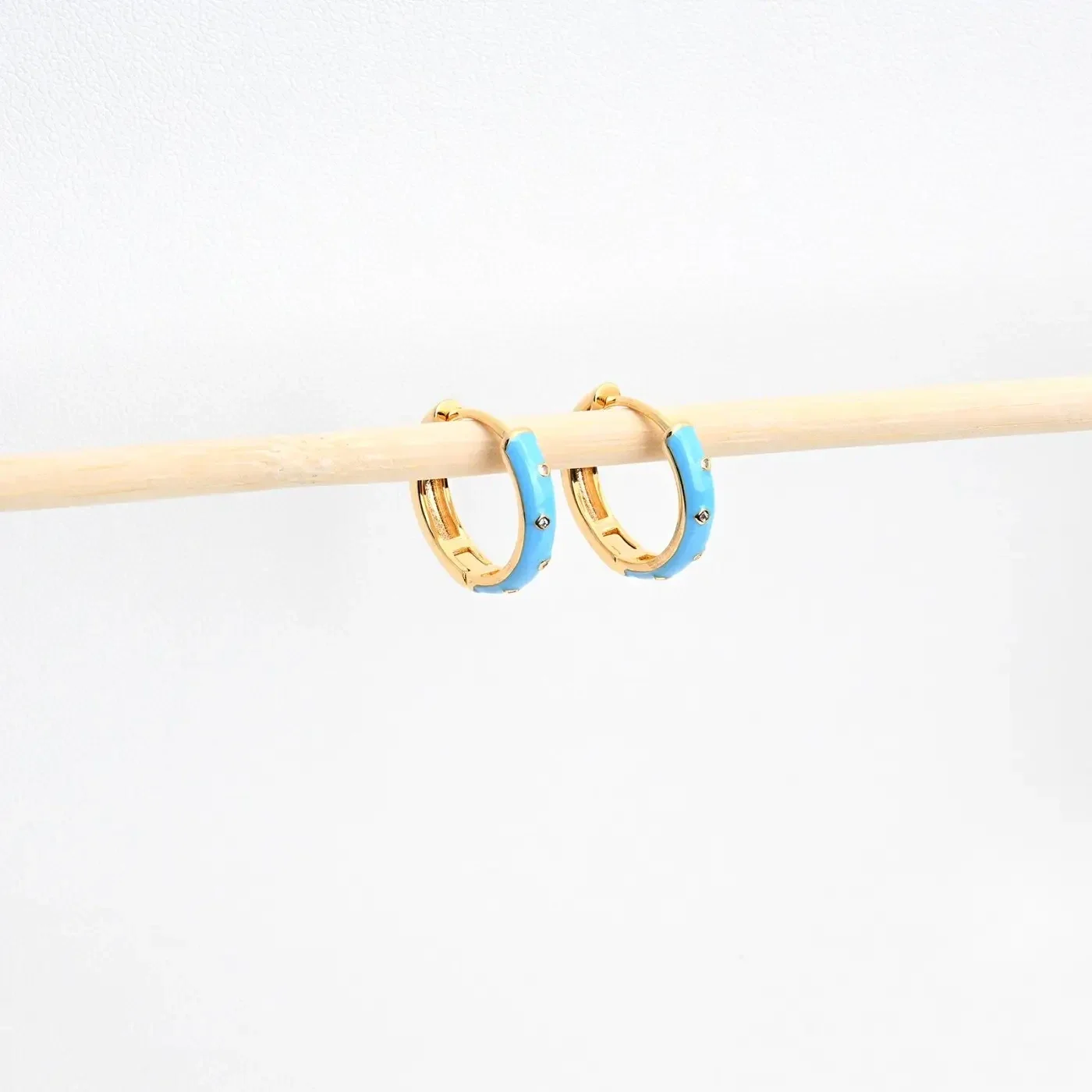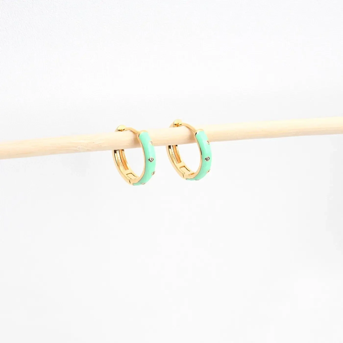 Boucles d'oreilles anneaux pour femmeet pour fille, en plaqué or GB, en doré avec brillants et couleurs.