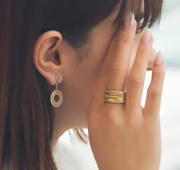 Boucles d'oreilles pendantes GB pour femme en argenté, en rhodium en forme de cercle couleur argent et or, avec brillants.