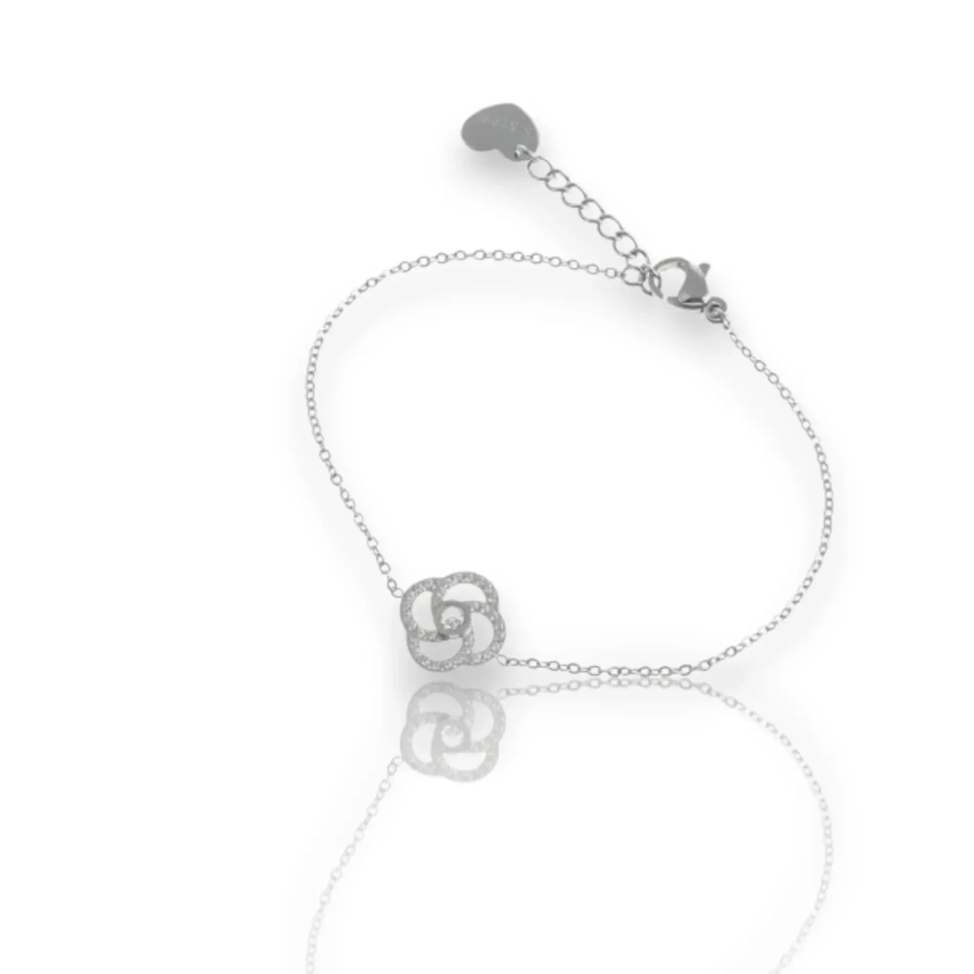 Boucles d'oreilles pour femme et pour fille en doré et en argenté, en acier inoxydable avec fleur spiralle zircone très fine GB.