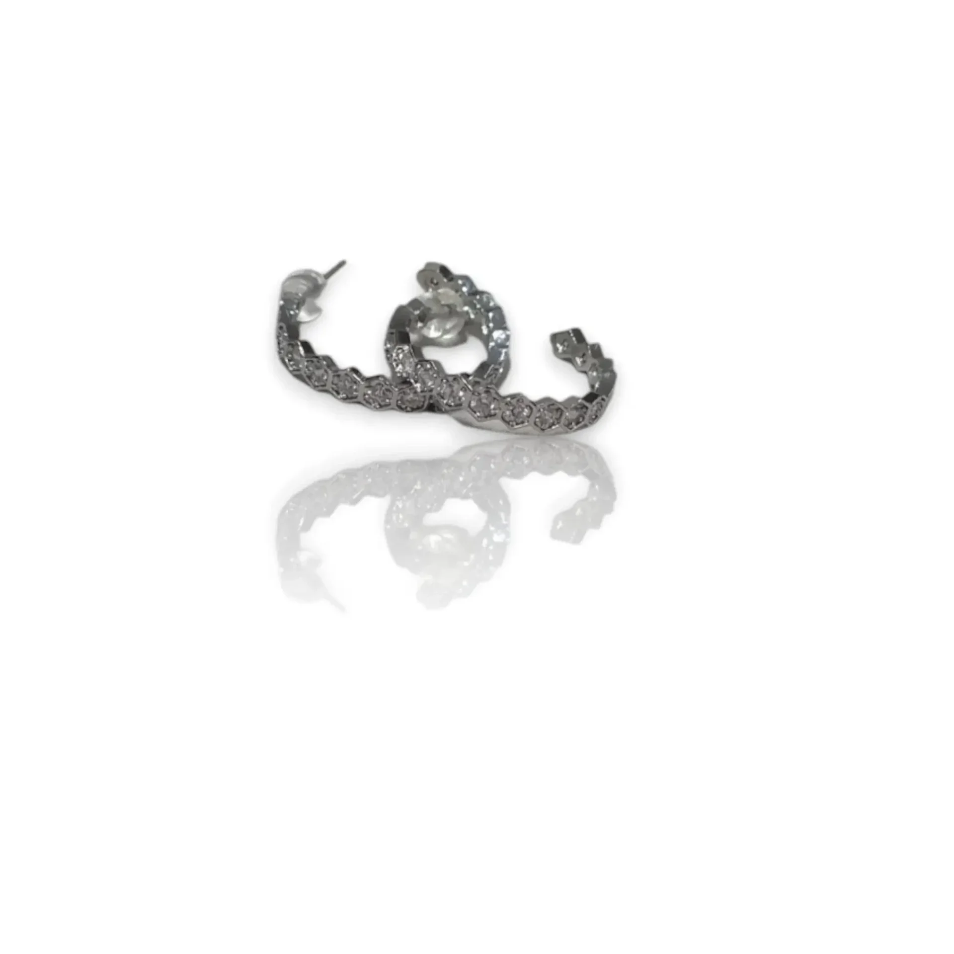 Boucles d'oreilles anneaux pour femme GB, en plaqué or argenté avec des brilliants en forme héxagonale .