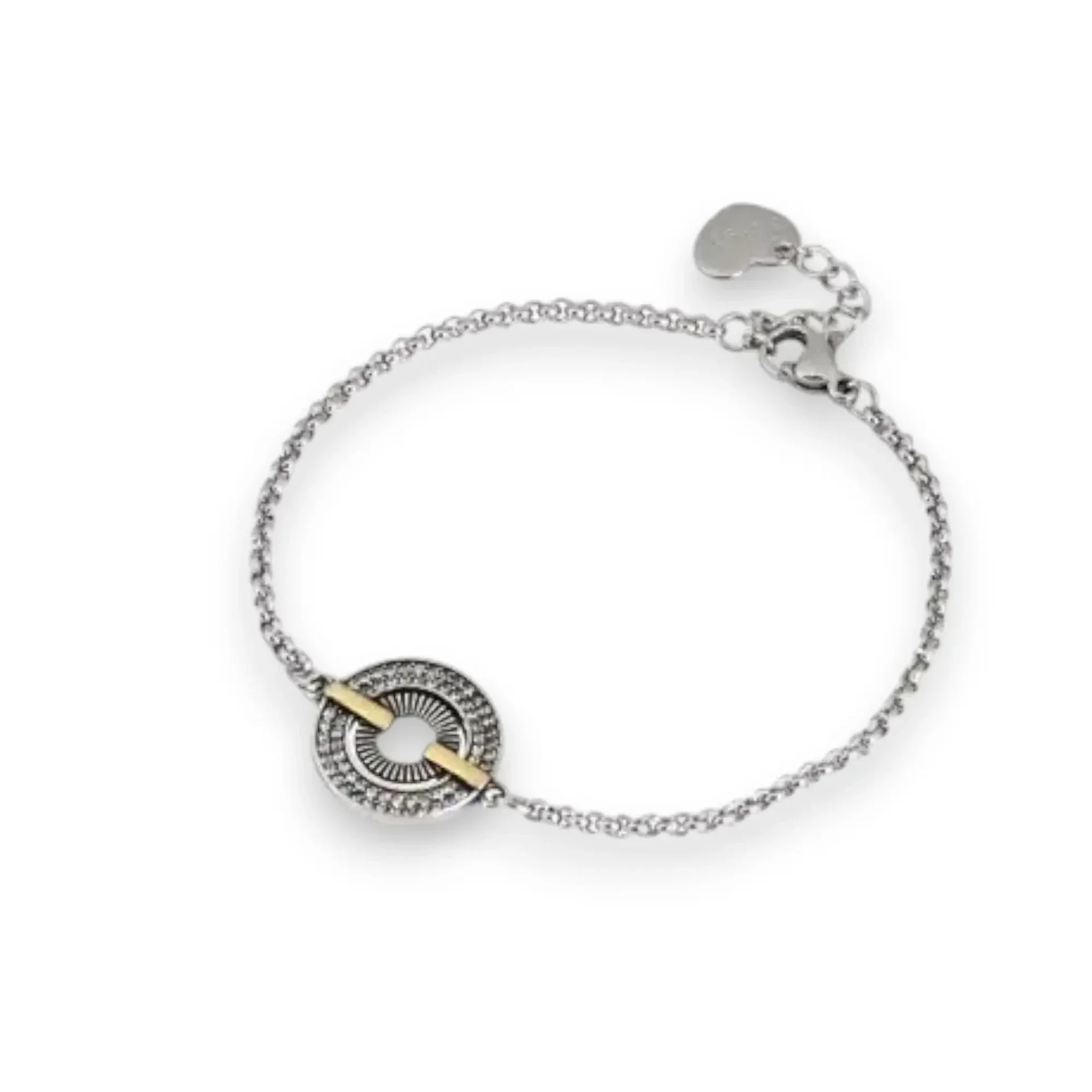 Collier GB pour femme argenté en rhodium avec cercle pendant orné de pierres zircones pardessus et entouré en torsade.