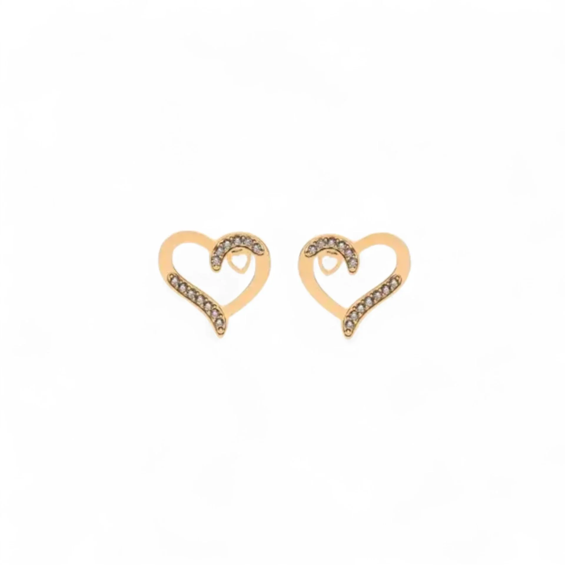 Chaine pour femme en doré, en acier inoxydable GB avec un grand coeur à moitié certié de petites zircones.