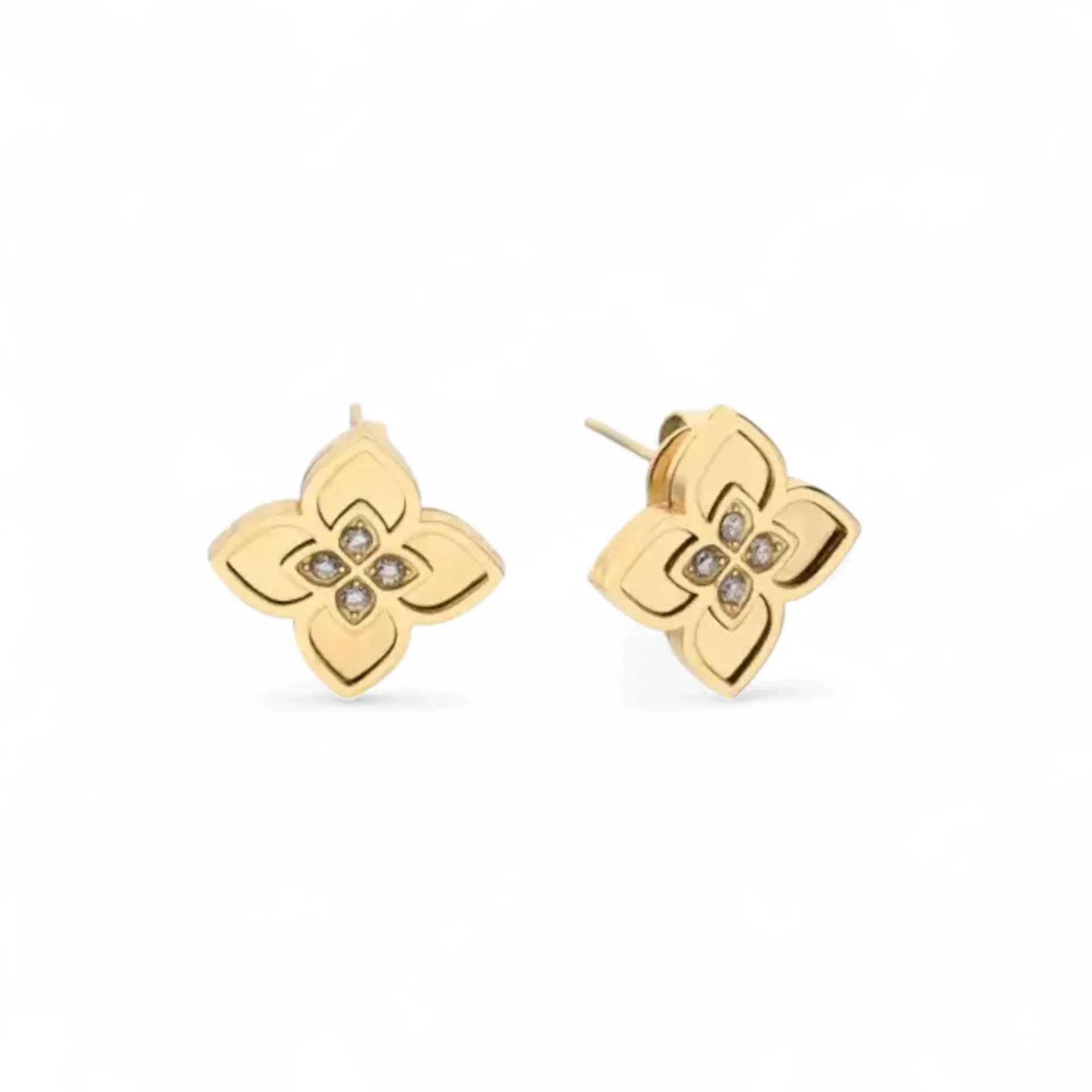 Chaine pour femme en doré, en acier inoxydable GB avec un pendentif en forme de fleur de lys avec des brillants.