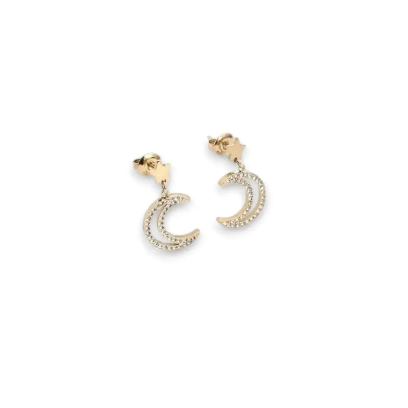 Gourmette pour femme en doré et en argenté, en acier inoxydable GB avec lune et étoile suspendues en zircones.