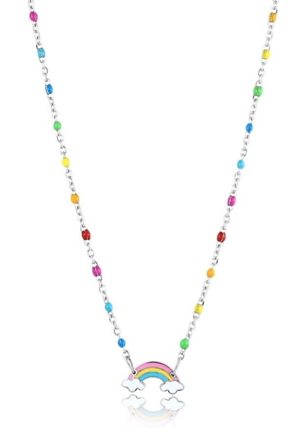 Chaine Arcenciel pour fille avec des perles en couleurs, en acier inoxydable avec des petites étoiles et sans.