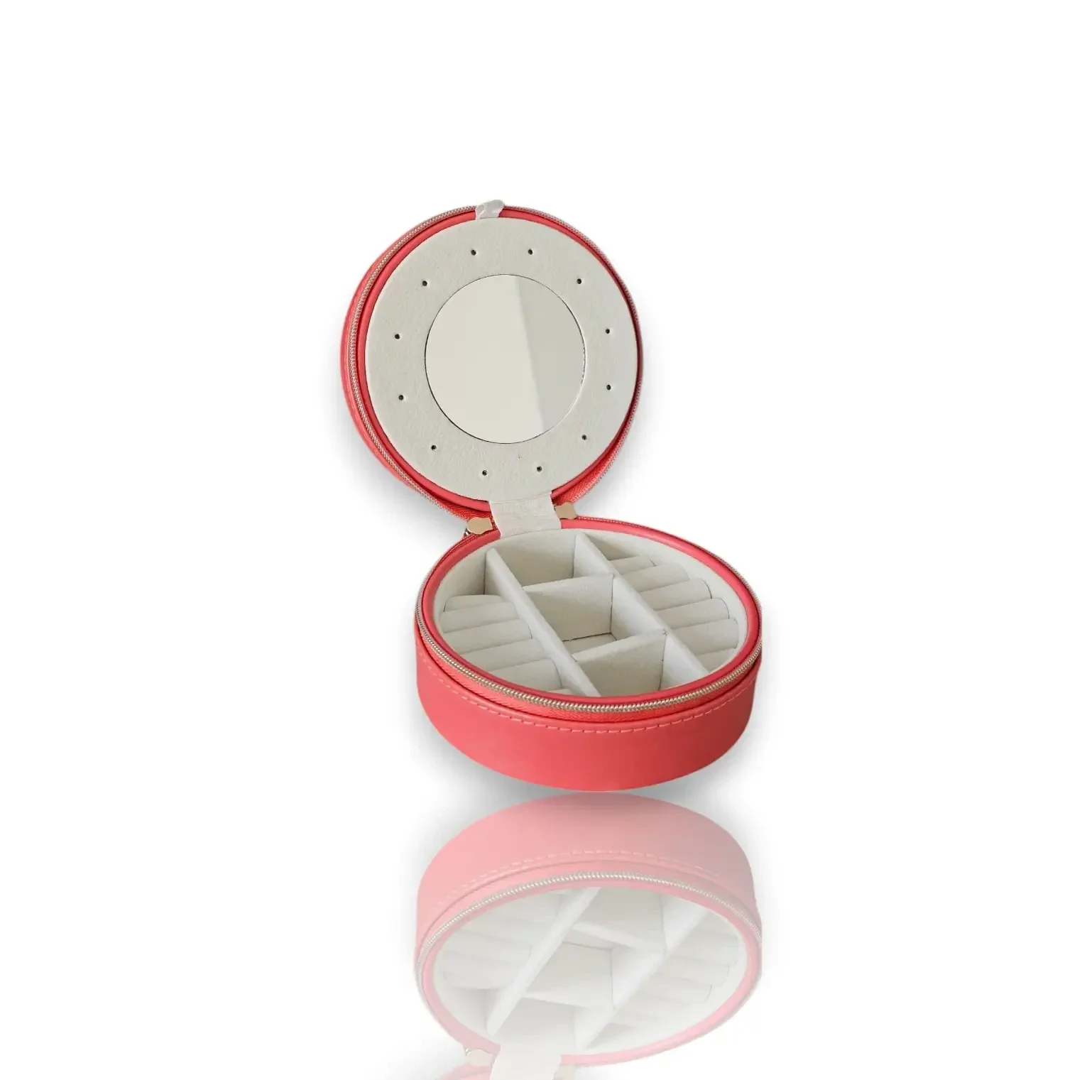 Boite à bijoux en cuire de haute qualié avec intérieur en daim blanc et mirroir, à double ouverture: Une première pour les colliers ou gourmettes et la deuxième pour les boucles d'oreilles ainsi que les bagues.