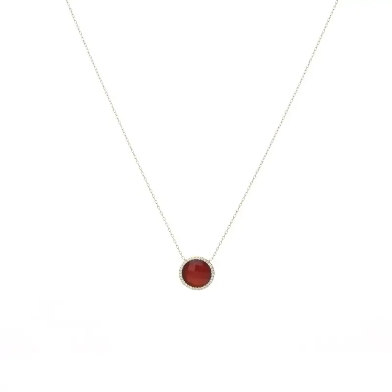 Boucles d'oreilles pour femme en doré, en acier inoxydable GB ornées d'une grande pierre précieuse naturelle en couleur, travaillée en forme de cercle.