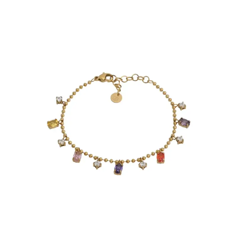 Collier pour femme en doré et en argenté, en acier inoxydable GB orné de magnifiques pierres semi précieuses ovales en couleurs et rondes blanches.