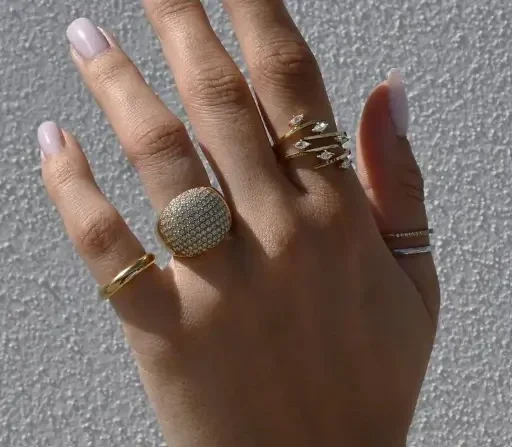 Bague pour femme en doré, en acier inoxydable GB ornée de petites zirconias formant une boule lui donnant un bel aspect en style royal.