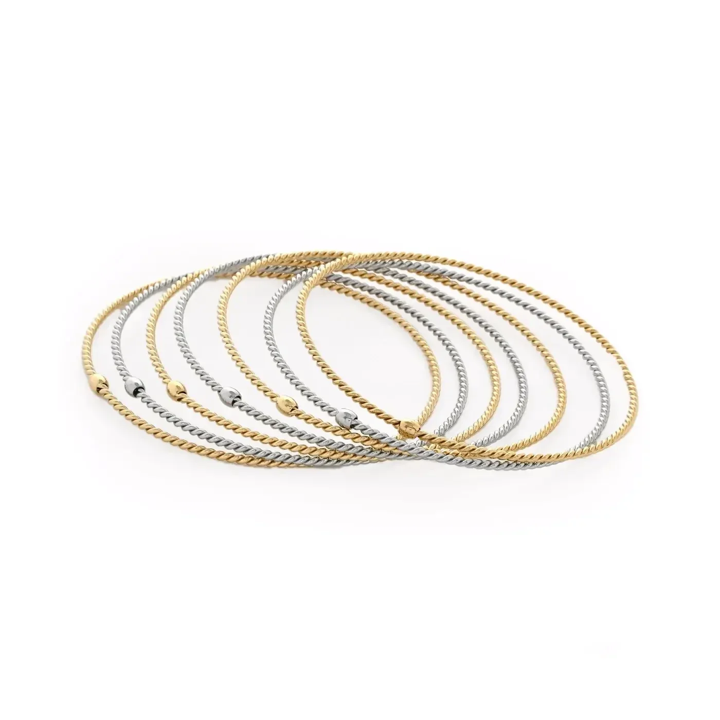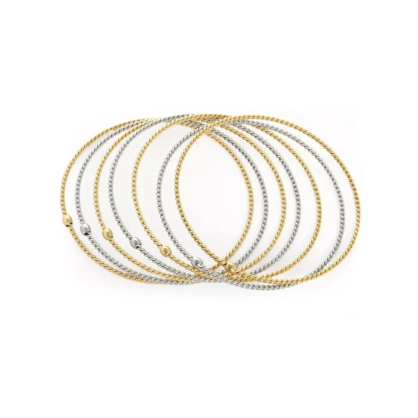 Ensemble de bracelets pour femme: 7 bracelets en acier inoxydable GB, mélangés en doré et en argenté, travaillés en modèle torsadé.