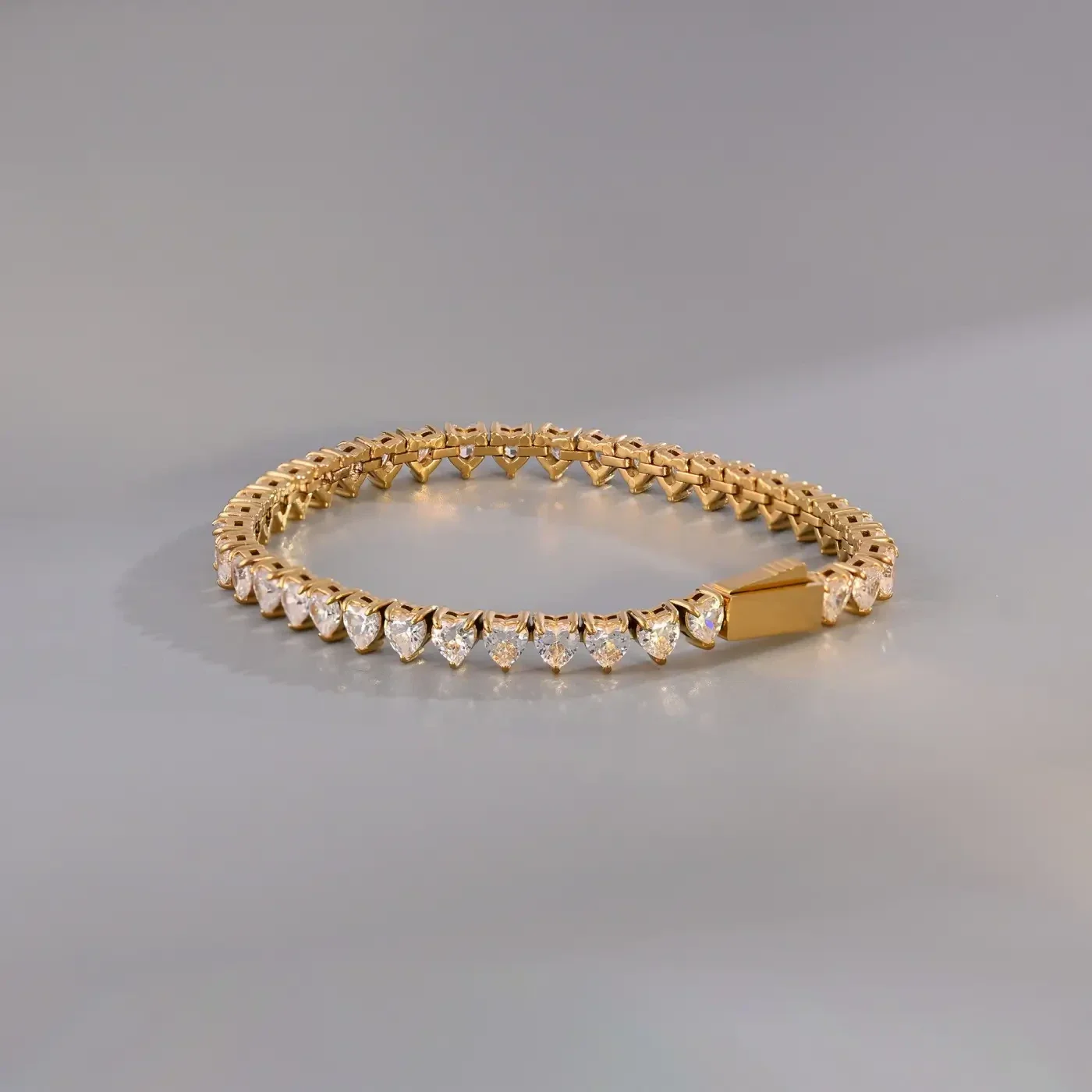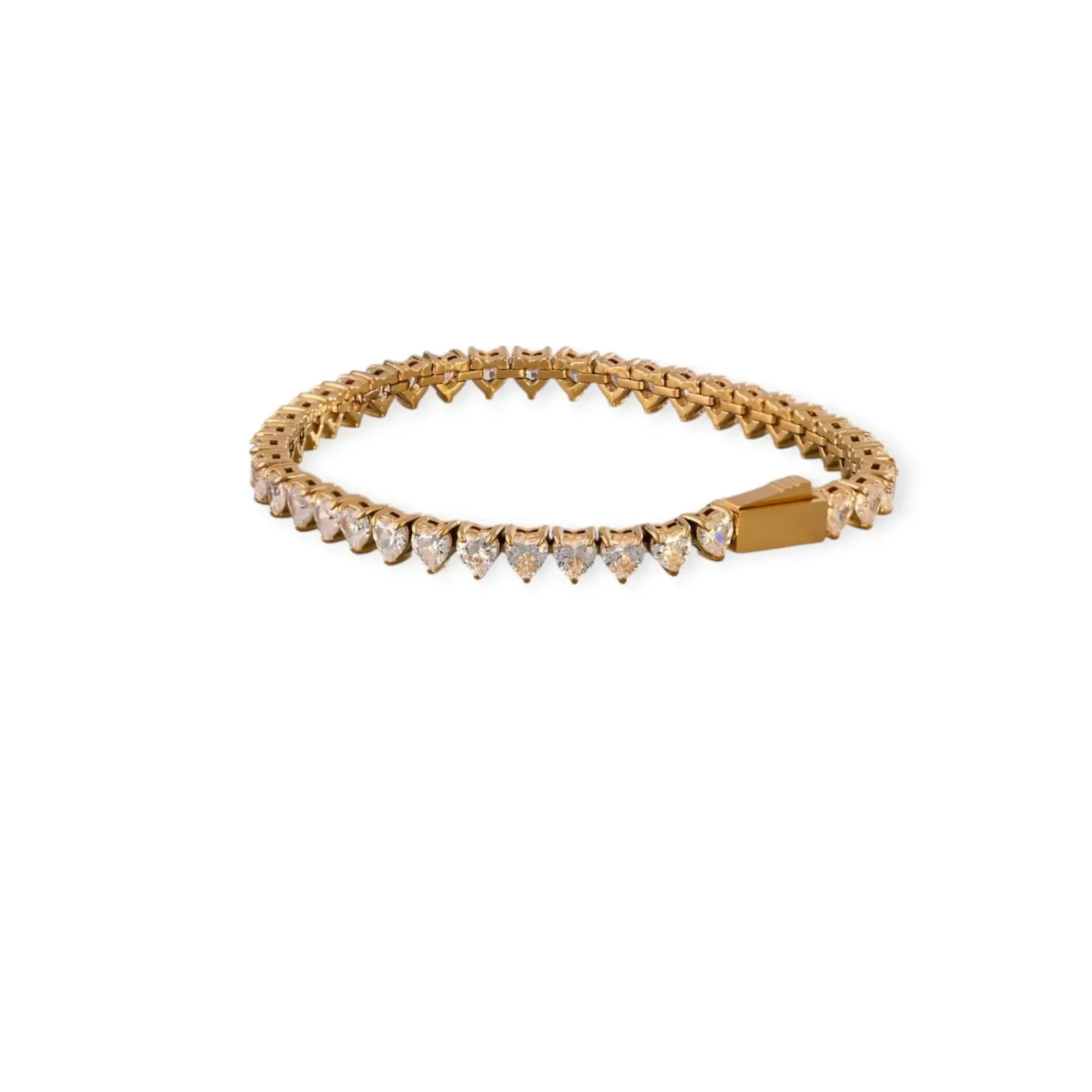 Bracelet rivière pour femme avec fermoire en doré et en argenté, en acier inoxydable GB avec des petits ou des grands coeurs.