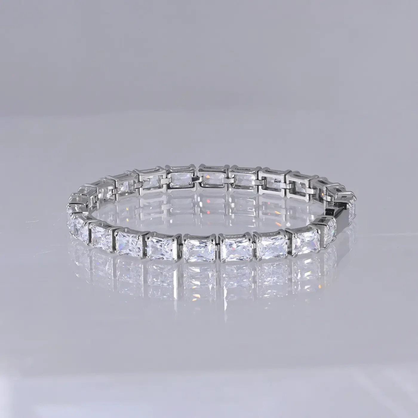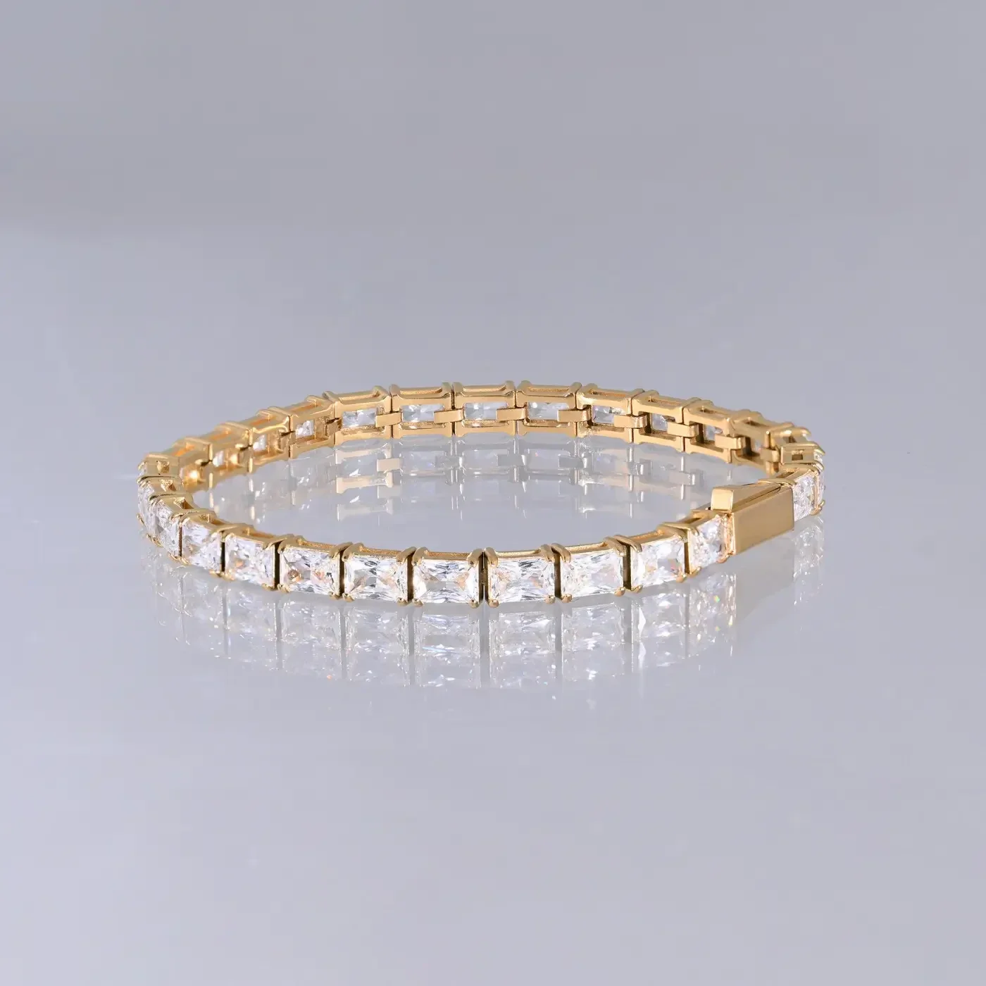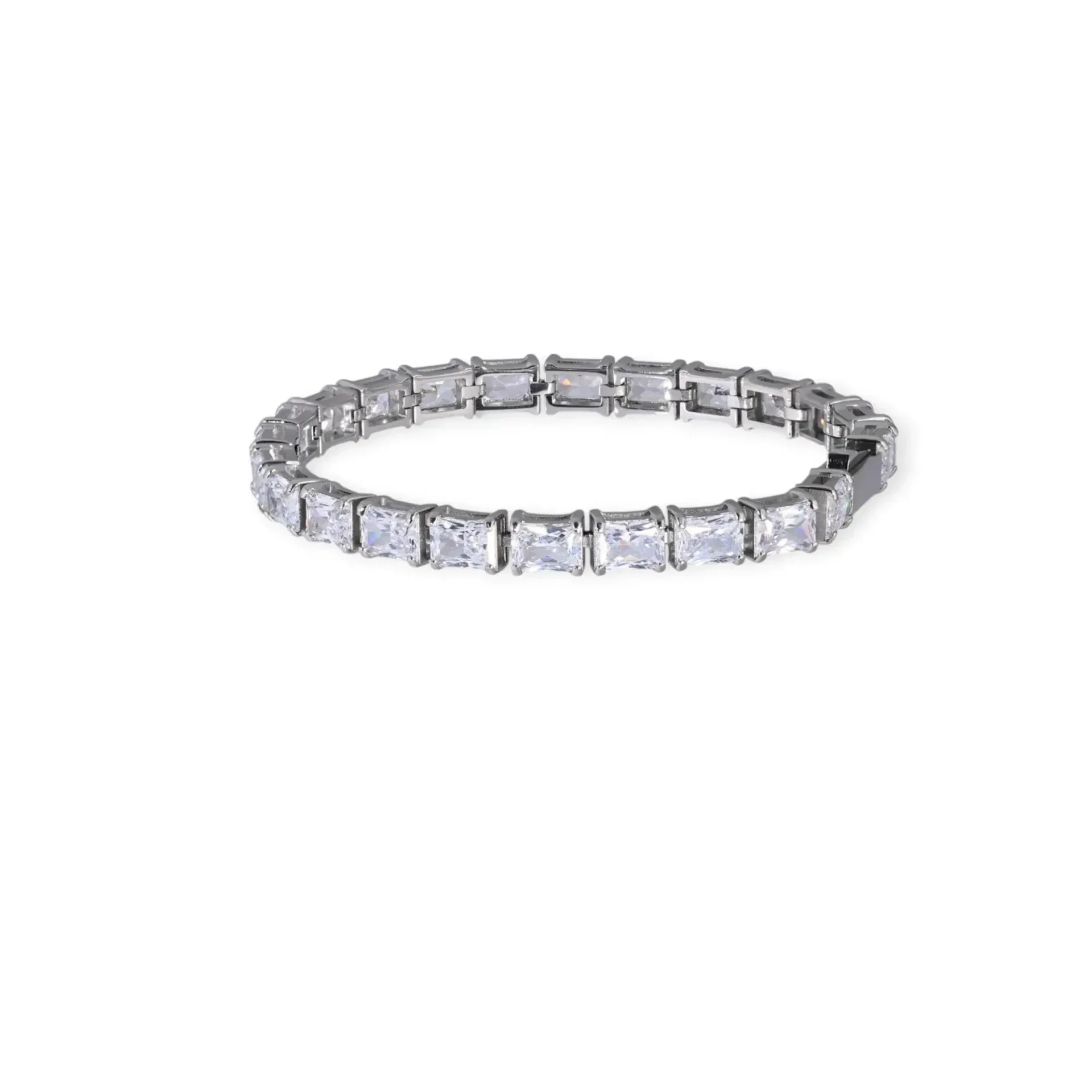 Bracelet rivière pour femme avec fermoire en doré et en argenté, en acier inoxydable GB avec des petites ou des grandes pierres rectangles.