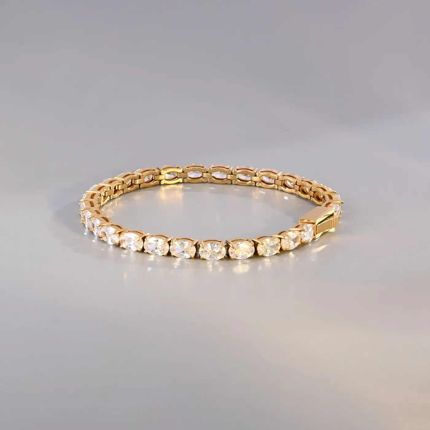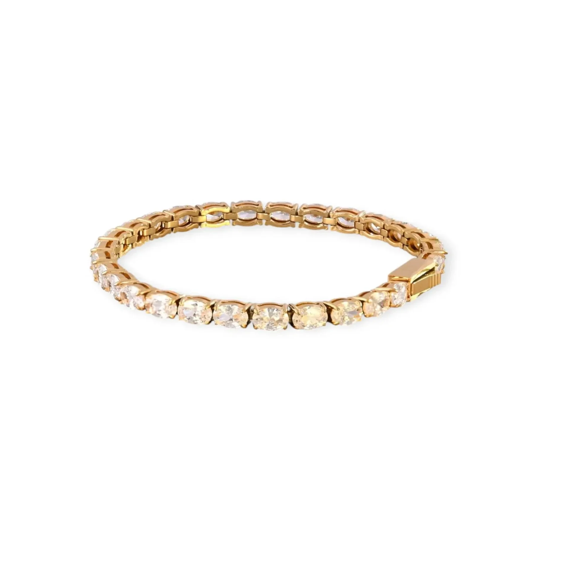 Bracelet rivière pour femme avec fermoire en doré, en acier inoxydable GB avec des pierres ovales.