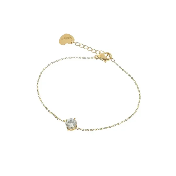 Gourmette pour femme et pour fille en doré et en argenté, en acier inoxydable GB avec une pierre ronde transparente.