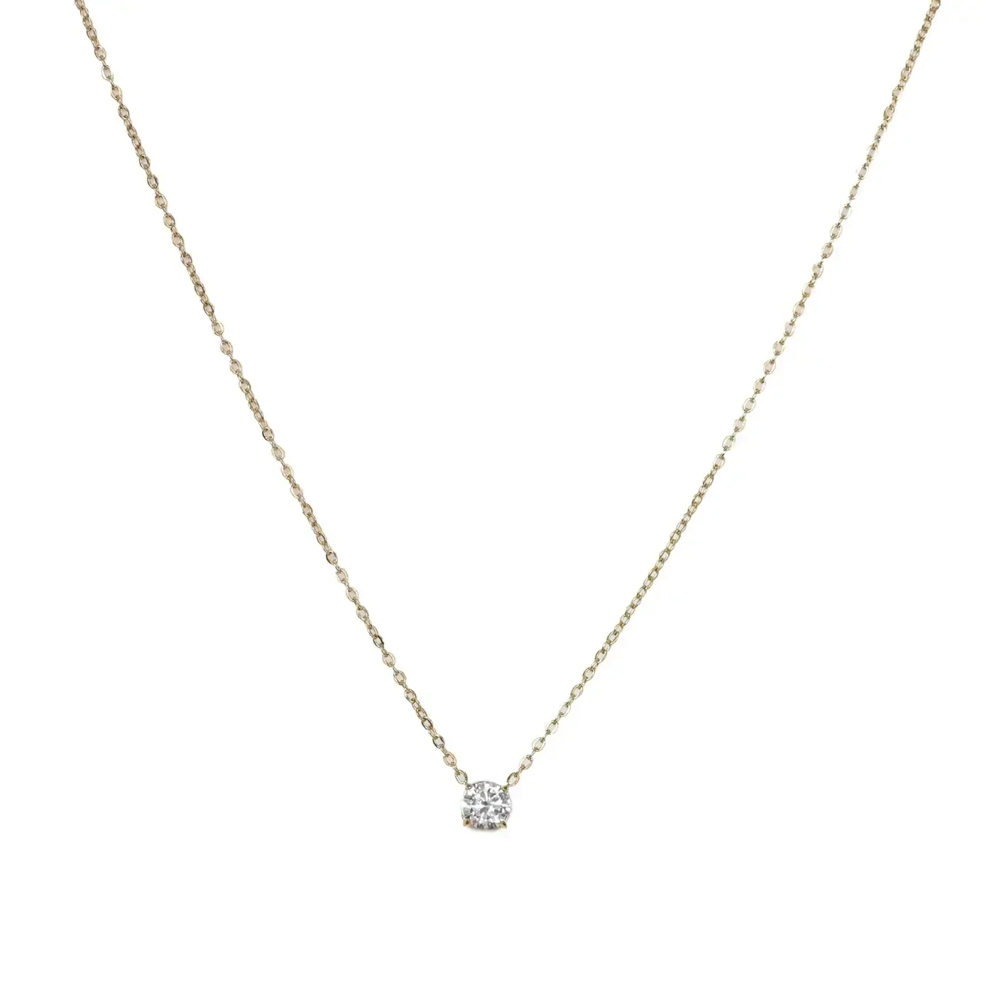 Chaine pour femme et pour fille en doré, en acier inoxydable GB avec une pierre ronde transparente.