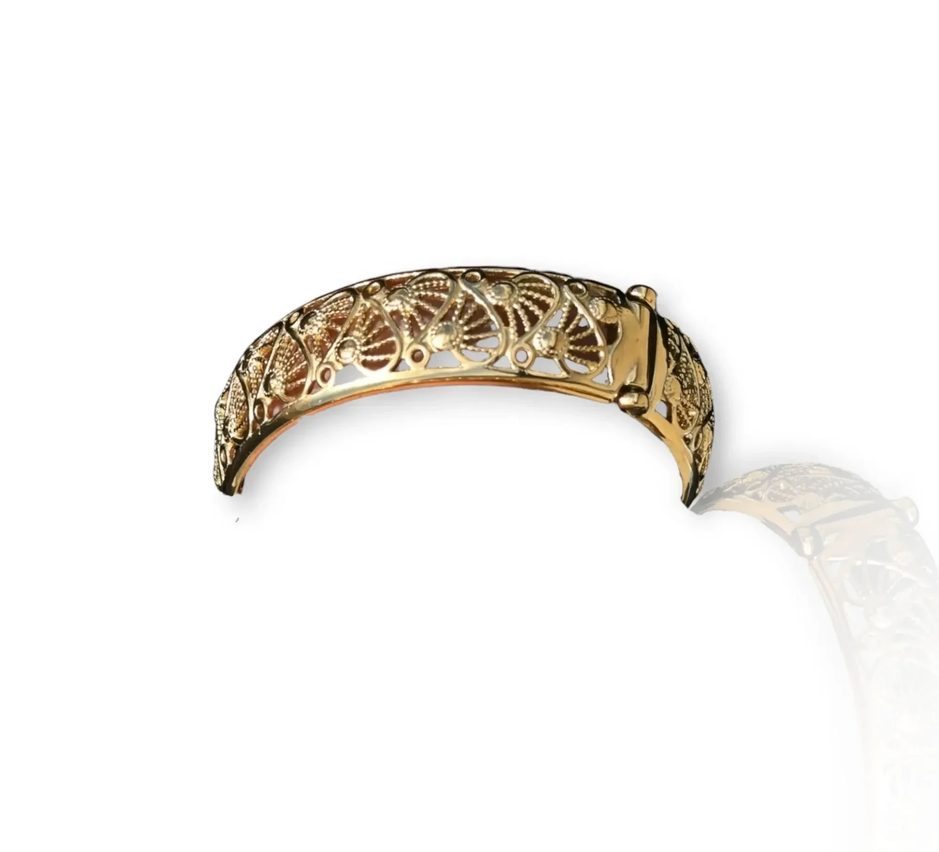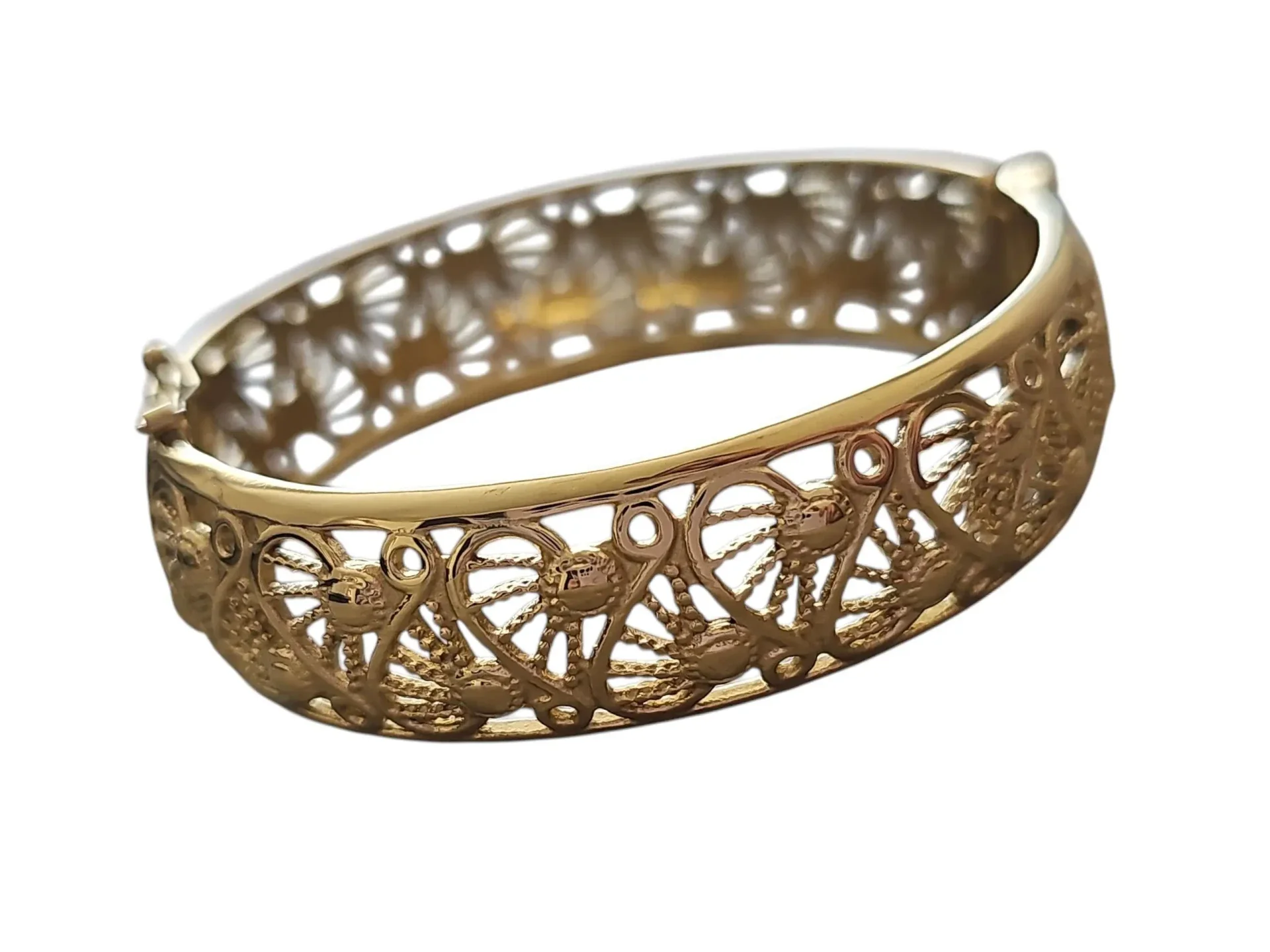 Bracelet rigide pour femme en doré, en acier inoxydable GB avec fermoire, travaillé en incrustation modèle traditionnel portugais viana.