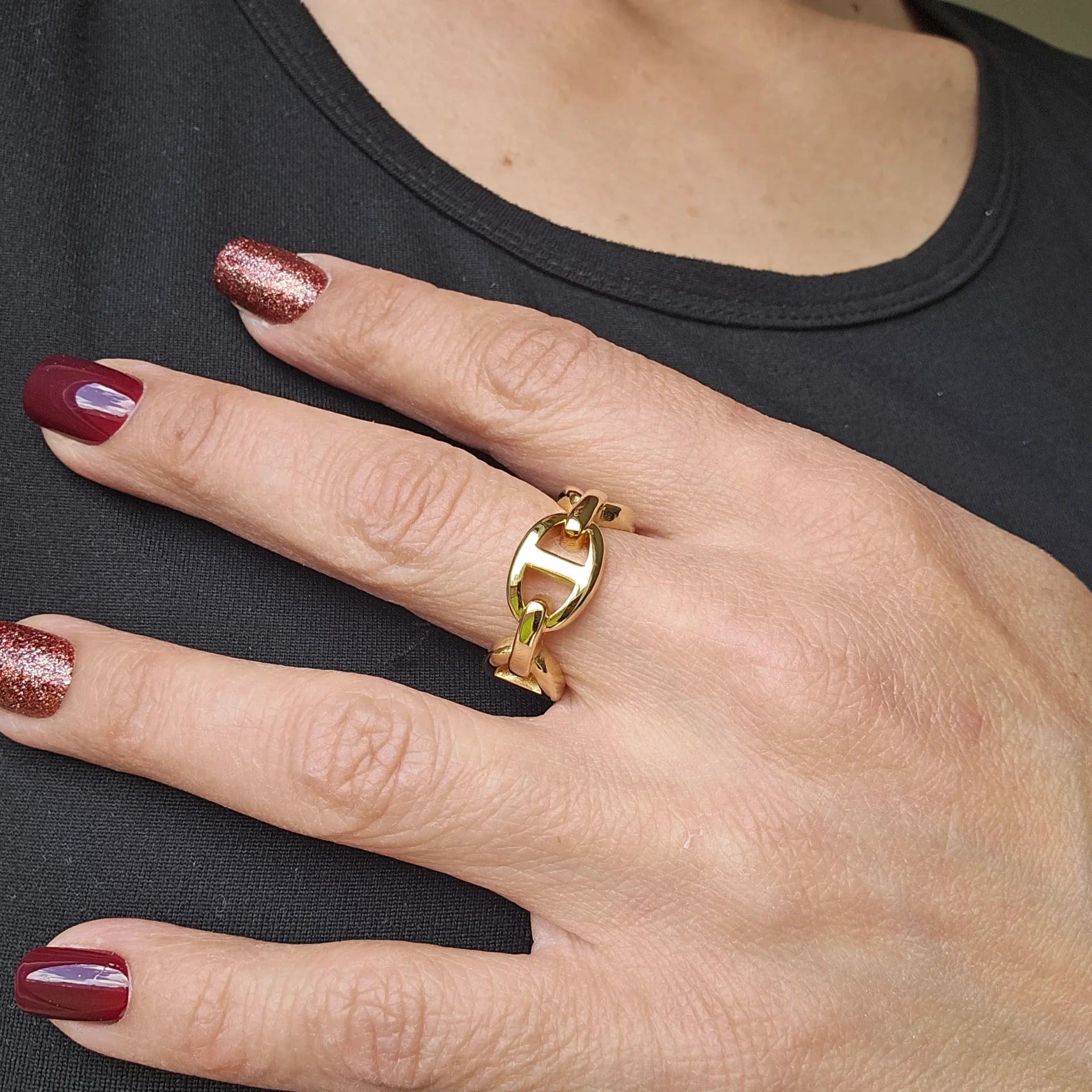 Bague pour femme en doré et en argenté, en plaqué or irrégulier GB en forme damien connéctés les uns les autres.