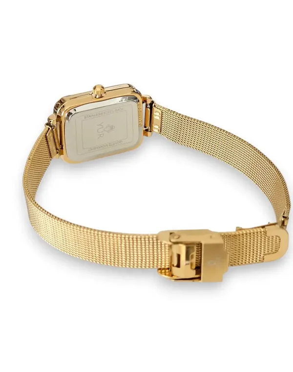 Son bracelet en maille combiné avec son cadran réctangle sobre et raffiné donne une touche très classique et chique, il est doté d'un fermoir à bouton-poussoir permettant de fixer, détacher et de le changer facilement.