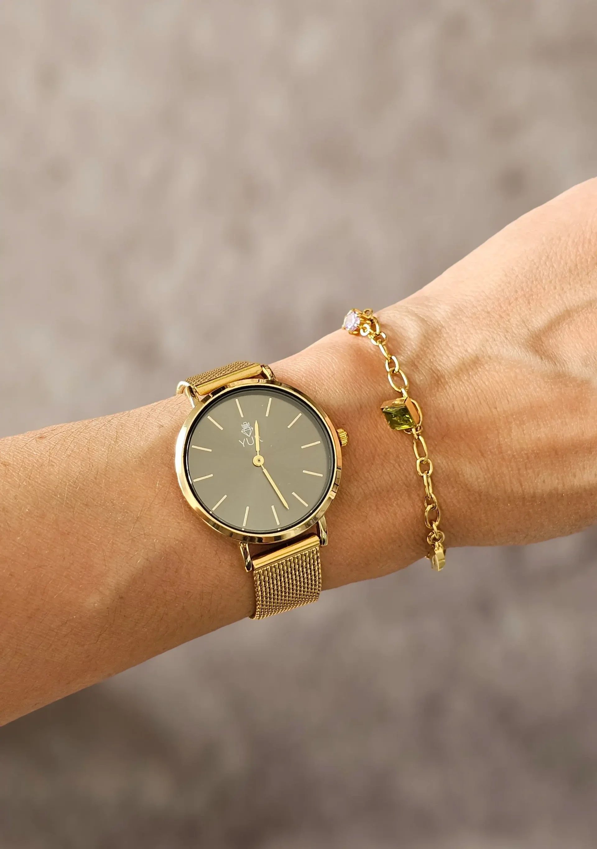 Son bracelet en maille combiné avec son cadran classique sobre et raffiné donne une touche très classique et chique, il est doté d'un fermoir à bouton-poussoir permettant de fixer, détacher et de le changer facilement.