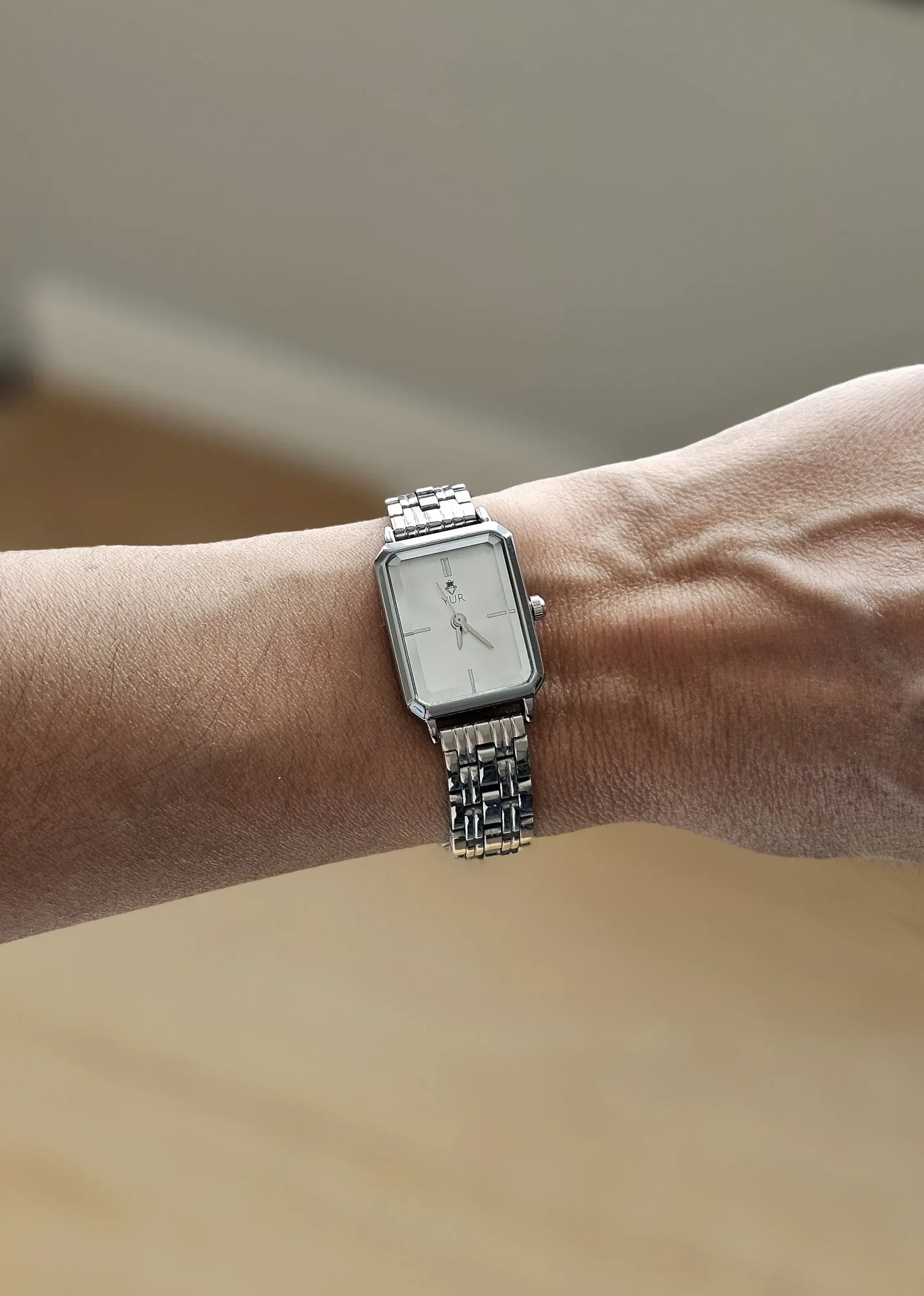 Montre pour femme YUR en argenté, luxueuse et discrète.