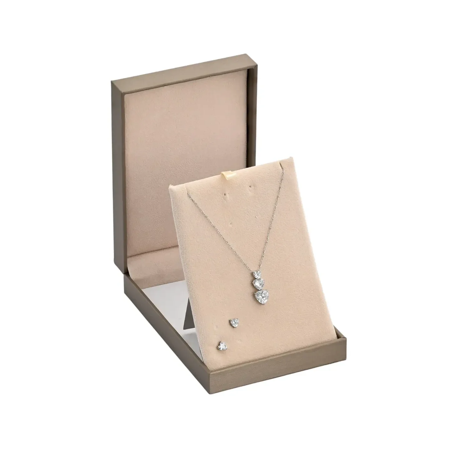 Set de bijoux pour femme en doré et en argenté, en acier inoxydable GB composé de boucles d'oreilles et d'une chaine avec trois petits coeurs en pierre blanches Zirconia.
