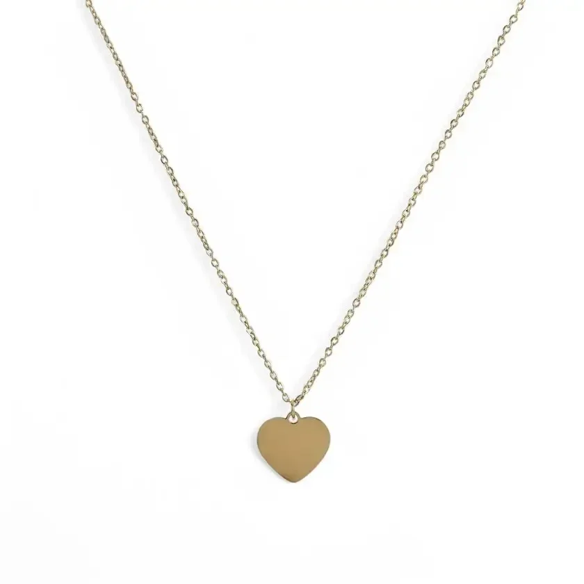 Collier pour femme et pour fille, en doré en acier inoxydable avec pendentif coeur lisse parfaitement gravable avec des initiales, une date, un petit symbole, un prénom...