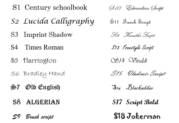 Choisissez l'écriture, symbole, signe, depuis l'image en écrivant la référence ci dessous: