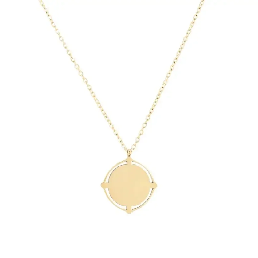 Collier pour femme et pour fille en doré, en acier inoxydable avec un médaillon rond lisse.