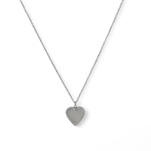 Collier pour femme, pour fille en doré et en argenté, en acier inoxydable avec un médaillon coeur lisse bordé en motif.